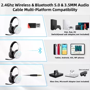 2.4GHz Wireless Bluetooth Gaming Headset with 30H Playtime and Ultra-Low Latency