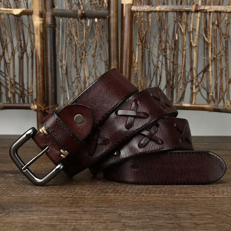 3.8CM Handwoven Genuine Leather Belt for Men