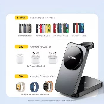 3-in-1 Magnetic Wireless Charger Stand for Phones, Earbuds, and Smartwatches