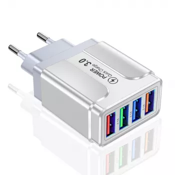 4-Port Quick Charge 3.0 USB Wall Charger with Fast Data Sync Cable