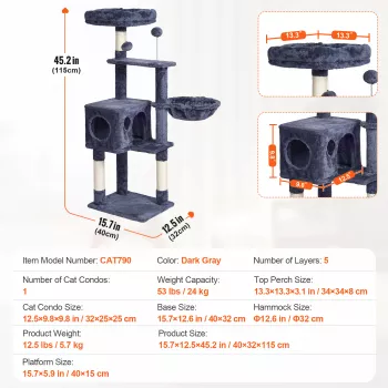 5-Level Cat Tree Tower with Hammock, Scratching Post, and Cozy Condo