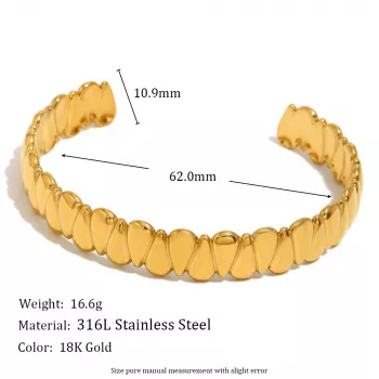 Smooth Teardrop Cuff Bracelet 18K Gold Plated Stainless Steel for Women