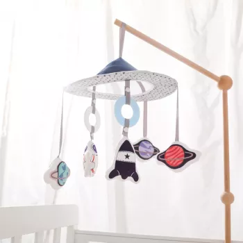 Space-Themed Baby Crib Mobile with Wooden Astronaut Design