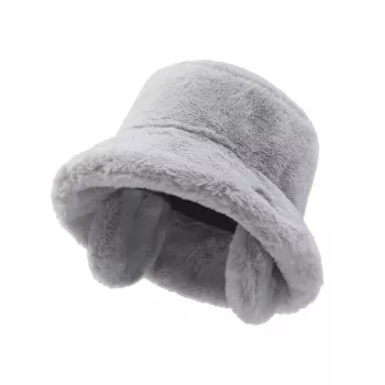Winter Faux Fur Bucket Hat with Adjustable Size and Detachable Earmuffs