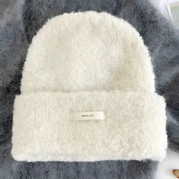 Women's Soft Curly Wool Winter Beanie with Ear Protection
